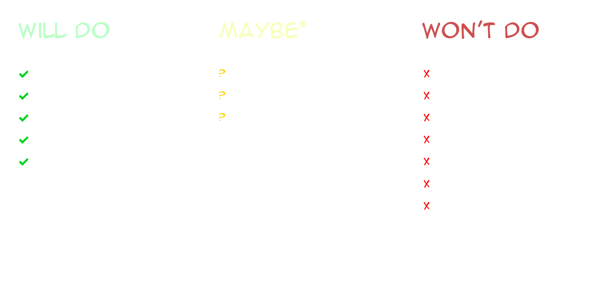What is a Terms of Service agreement? (TOS)A terms of service agreement is a document that lists the conditions and rules of commissioning an artist. By paying for a commission, you are agreeing to the terms listed in said document. Please make sure you read the terms of service before you agree to commission me.How long does it usually take to finish a comm?After I receive payment, depending on complexity, turn around can be as quick as a day for quick sketches (on weekends) to 1-3 weeks or more. I have a dayjob alongside my webtoon project and that means a large portion of my time is occupied especially on weekdays.Personal vs Commercial CommsTo put things simply, commercial use commissions are ones used on any platform that can/will generate profit.